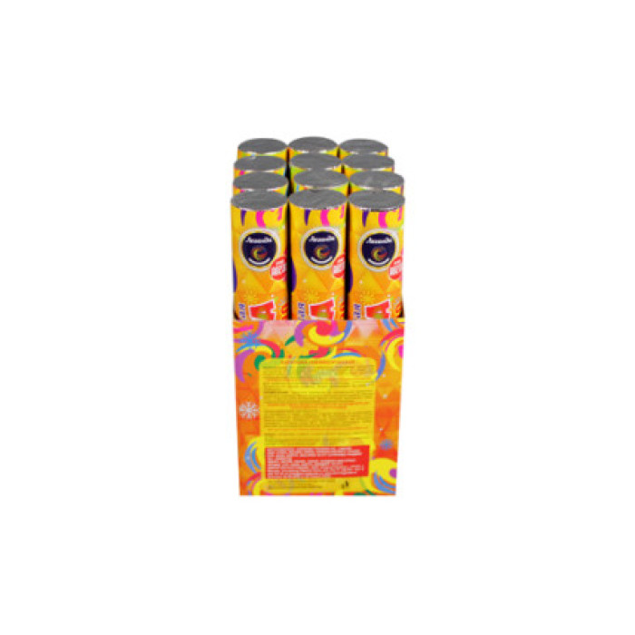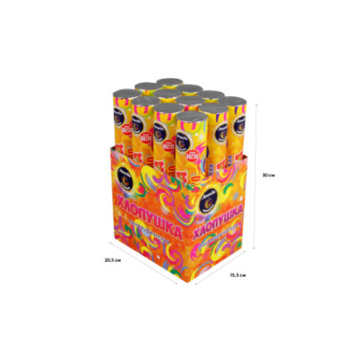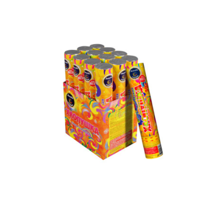 Вы можете приобрести хлопушки поштучно, в упаковке (шоу-боксе) по 12 штук, в коробках по 6 упаковок. Для продажи в магазинах мы рекомендуем покупать продукцию в ярких красочных шоу-боксах. Покупатели обязательно заметят товар на витрине и оценят привлекательность его оформления.