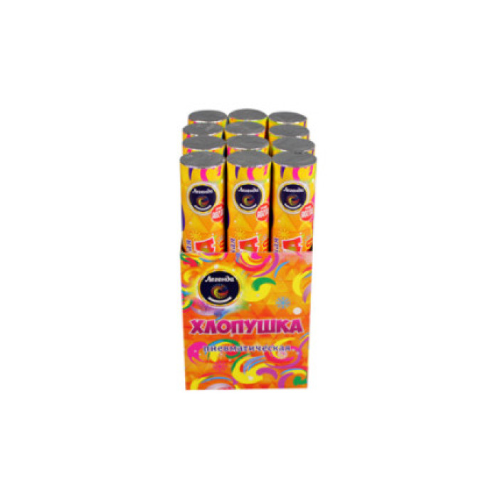 Пневмохлопушка 30 см с разноцветным конфетти и серпантином выстреливает облаком разноцветного конфетти из фольги. Для выброса внутреннего содержимого используется баллон со сжатым воздухом. Высота зрелищного эффекта - до 5 метров.
