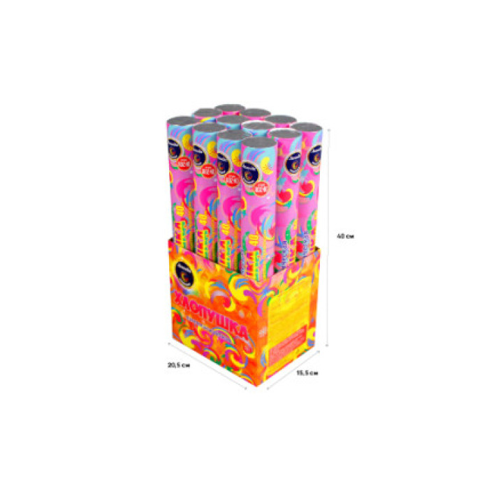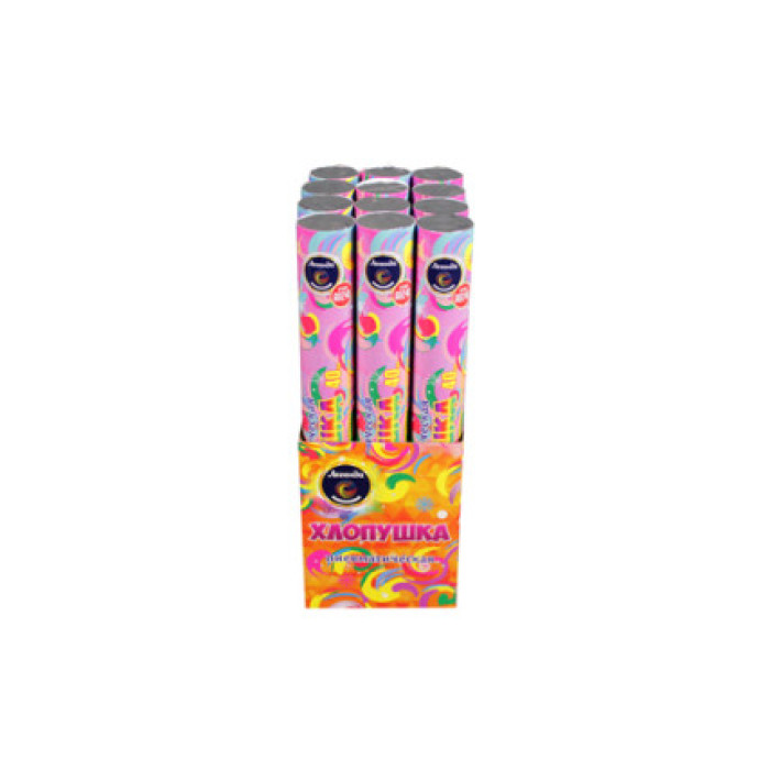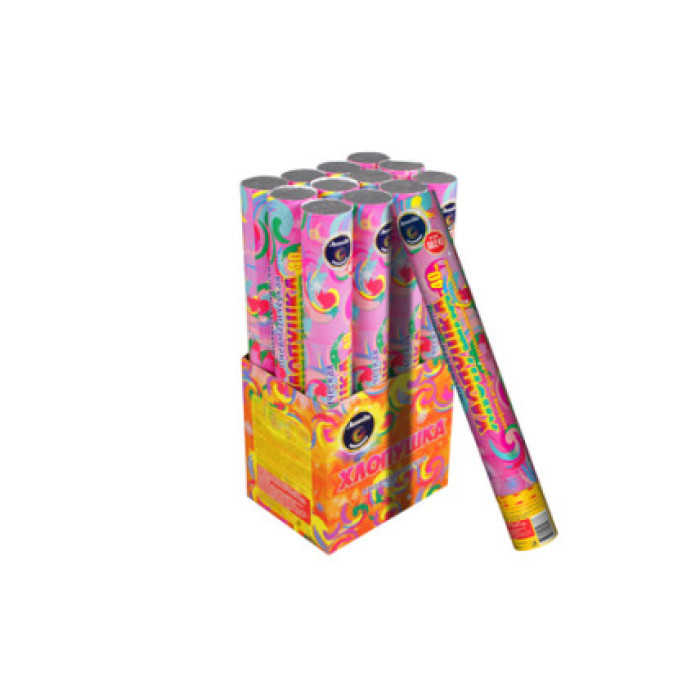Вы можете купить хлопушки поштучно, в упаковке (шоу-боксе) по 12 изделий, в коробке по 6 упаковок. Для розничных магазинов мы рекомендуем приобретать товар упаковками по 12 штук в ярком разноцветном шоу-боксе. Ваши покупатели точно оценят привлекательность оформления хлопушек.