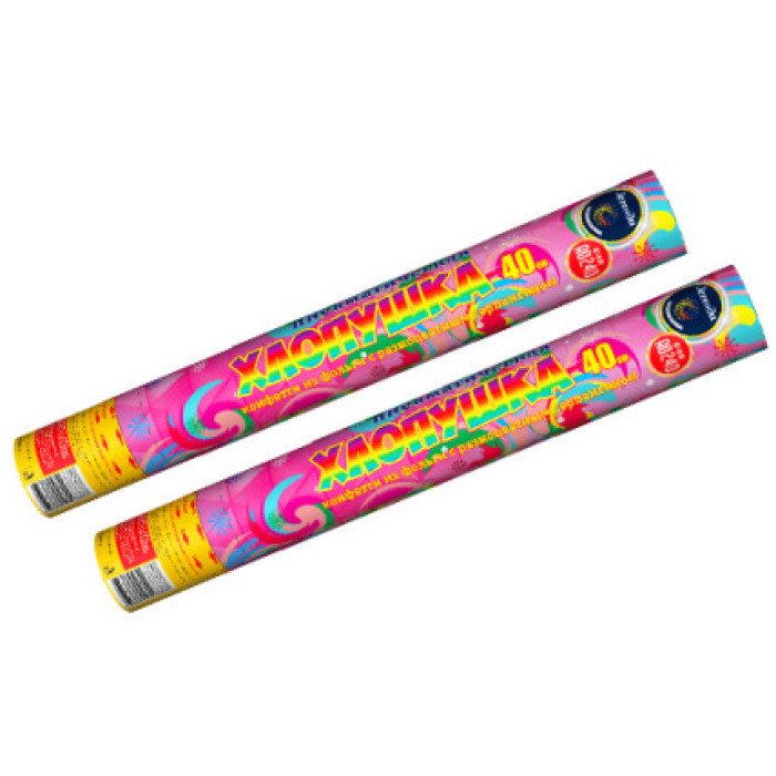 Пневмохлопушка 40 см с конфетти и серпантином приводится в действие с помощью баллона со сжатым воздухом. Изделие выстреливает красивым водопадом разноцветного серпантина и конфетти из фольги. Высота зрелищного эффекта - до 5 метров.